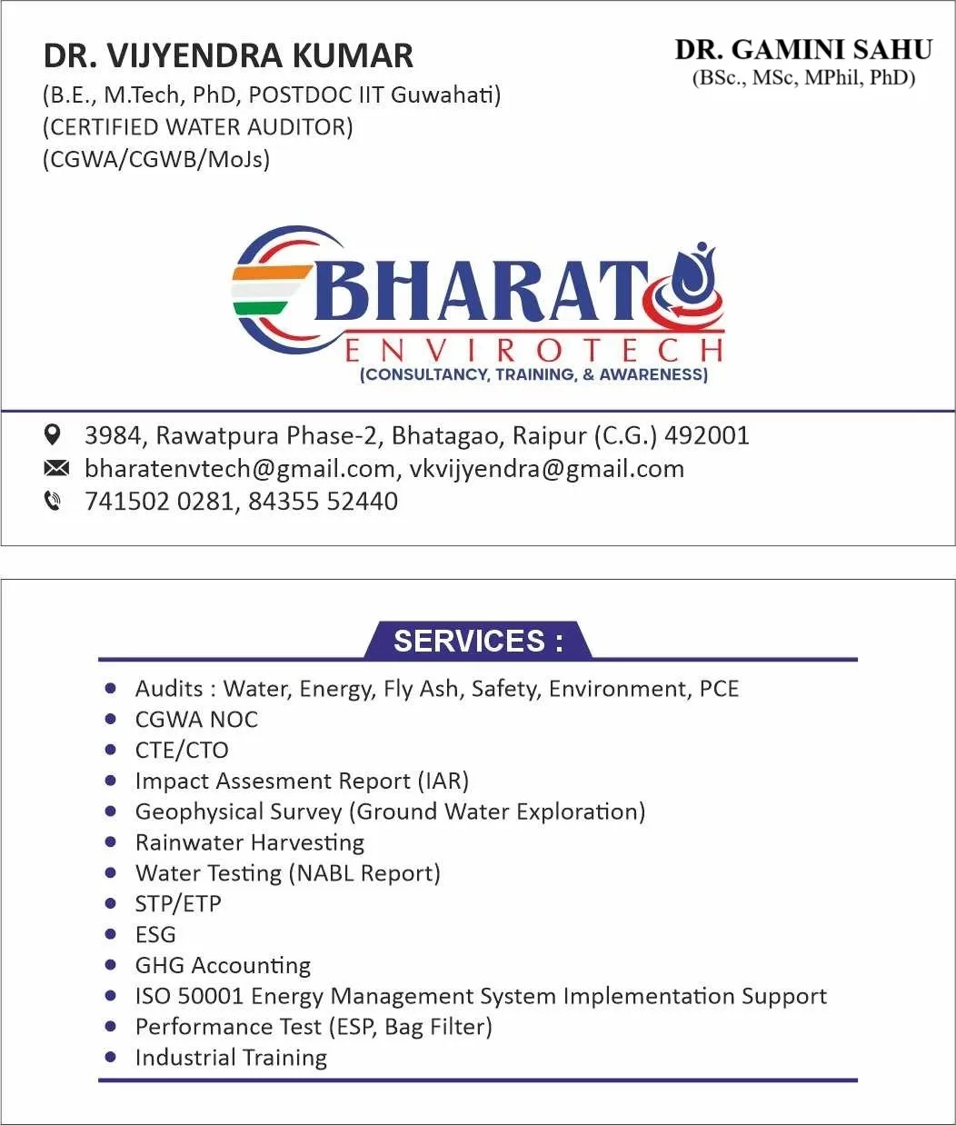Address: Bharat Envirotech, Rawatpura Colony, Phase 2, Bhatagaon, Raipur, Chhattisgarh 492013